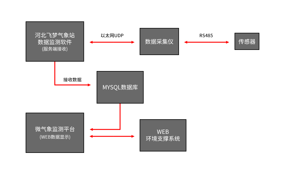 飛夢交通氣象智能預警系統方案由傳感器系統、采集系統、供電系統、通訊系統、外圍設備等硬件配合相應的采集軟件、數據處理分析軟件、中心站組網軟件構成。對公路、鐵路沿線的風向風速、氣溫、濕度、雨量、能見度、路面狀況(路面和路基溫度、路面干濕程度、積水厚度、雪深等))等進行自動監測,并將監測信息及時傳送到監控中心。